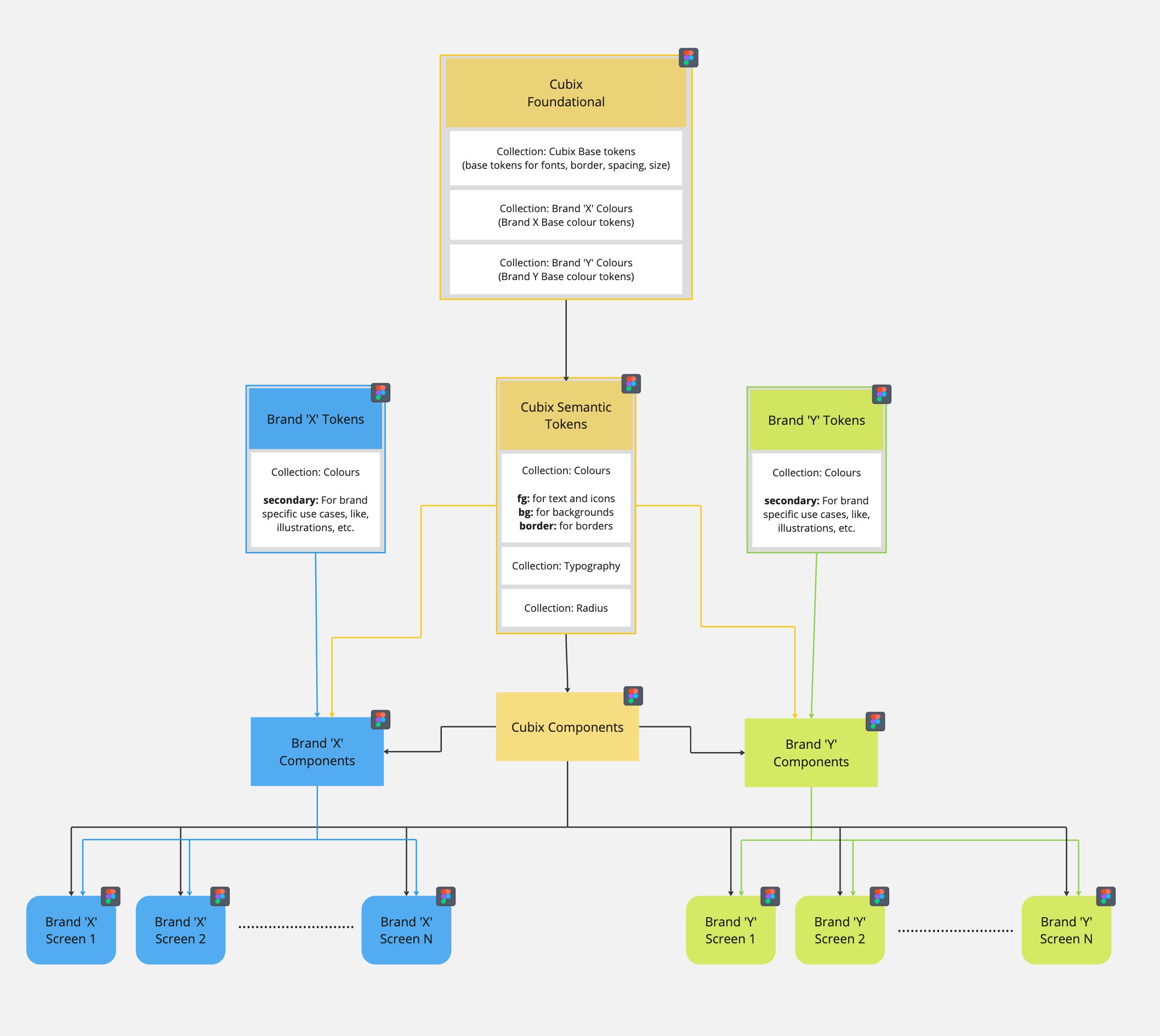 As we began working on a new product, I refined our Figma file structure to support multiple brands and their respective modes. This involved creating a scalable system that could accommodate future brands and ensuring a coherent user experience across products.